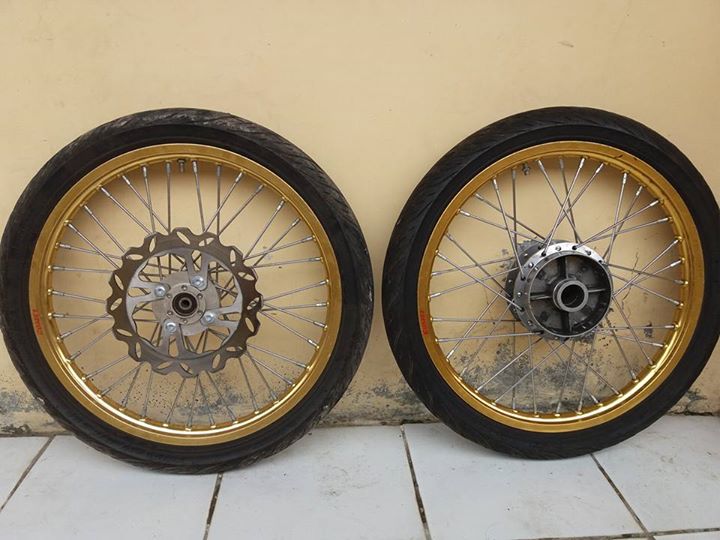 Dijual pelek comet warna gold siap pasang harga termasuk rendah dan masih bisa nego, cocok untuk jupiter mx dan vixion Barang bagus,no baling, barang bisa di cek sepuasnya.
