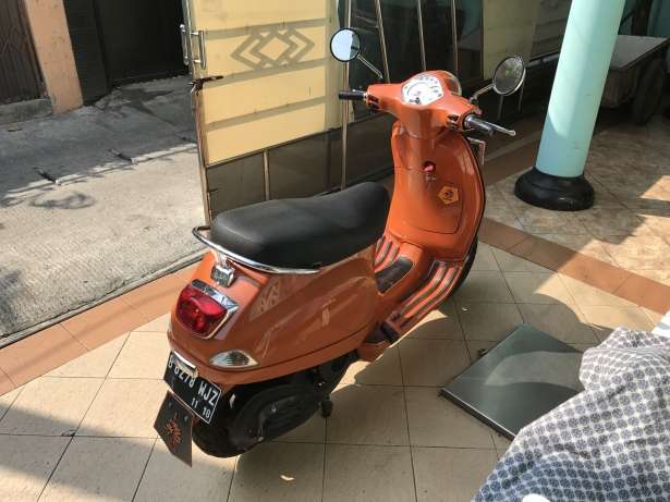 Vespa LX 150 3Vie tahun 2013 Cat Repaint Orange Plat B Tangerang Pajak Hidup November 2017 BPKB stnk faktur lengkap Kunci 2 Biru dan Coklat KM 33rb on going CVT Malossi Klakson denso Harga 16,5Jt Nett Price No Nego Cash Only Gak terima TT / Kredit